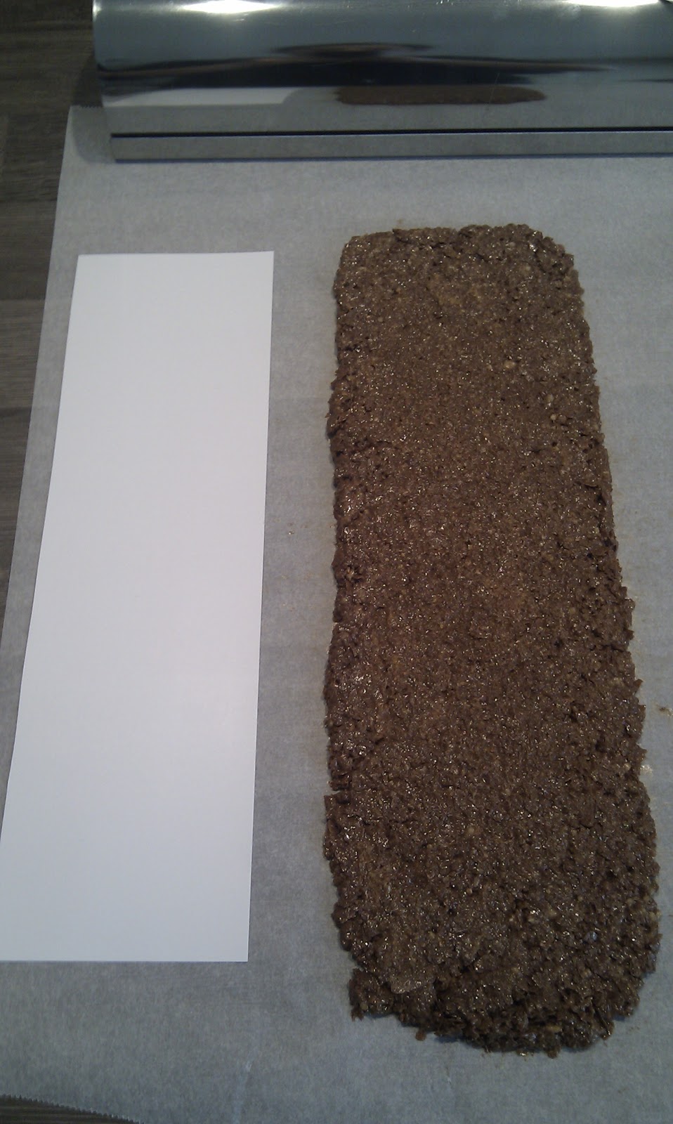 | Le praliné croustillant et le gabarit dont je me suis servi. |