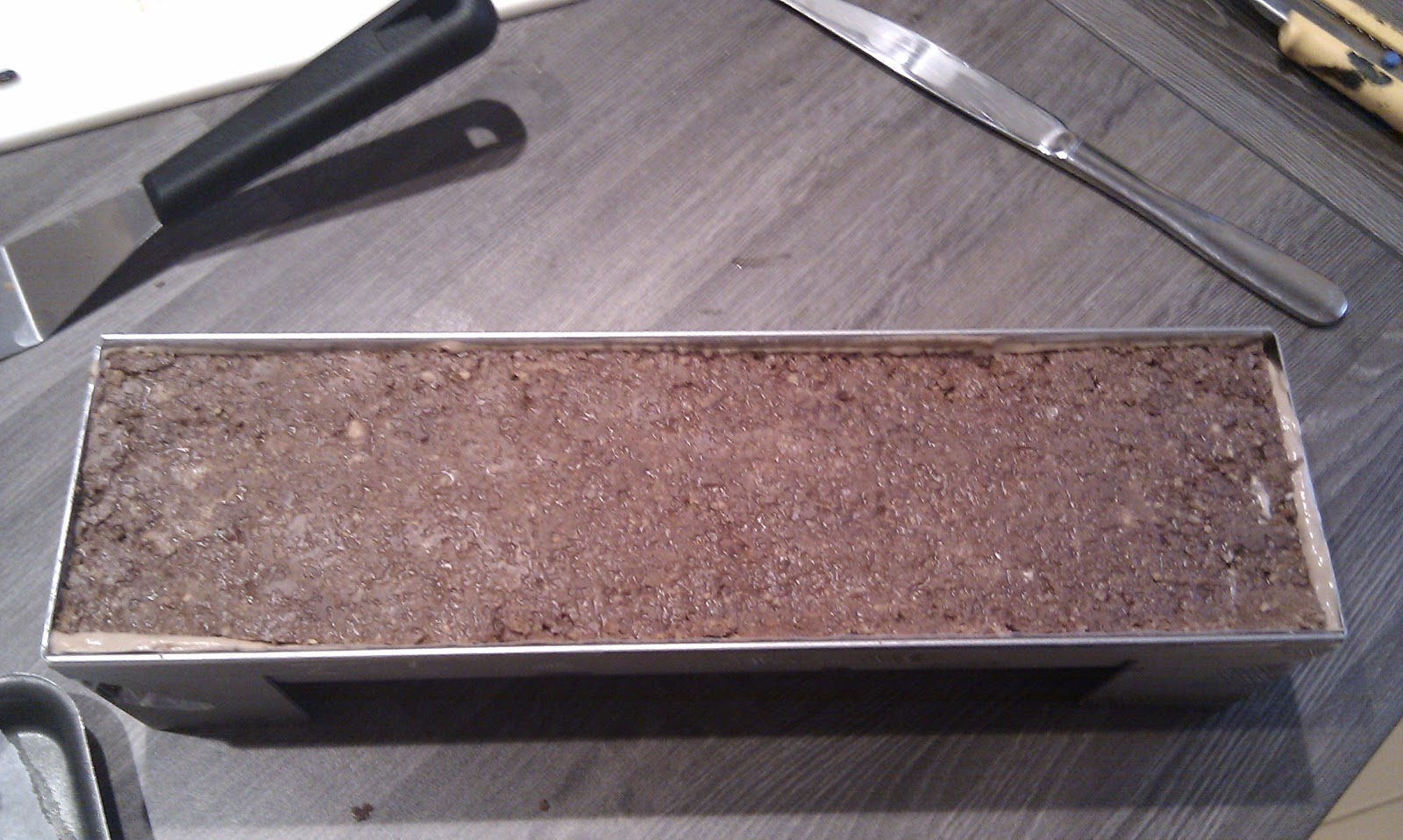 | Le praliné croustillant et le gabarit dont je me suis servi. |