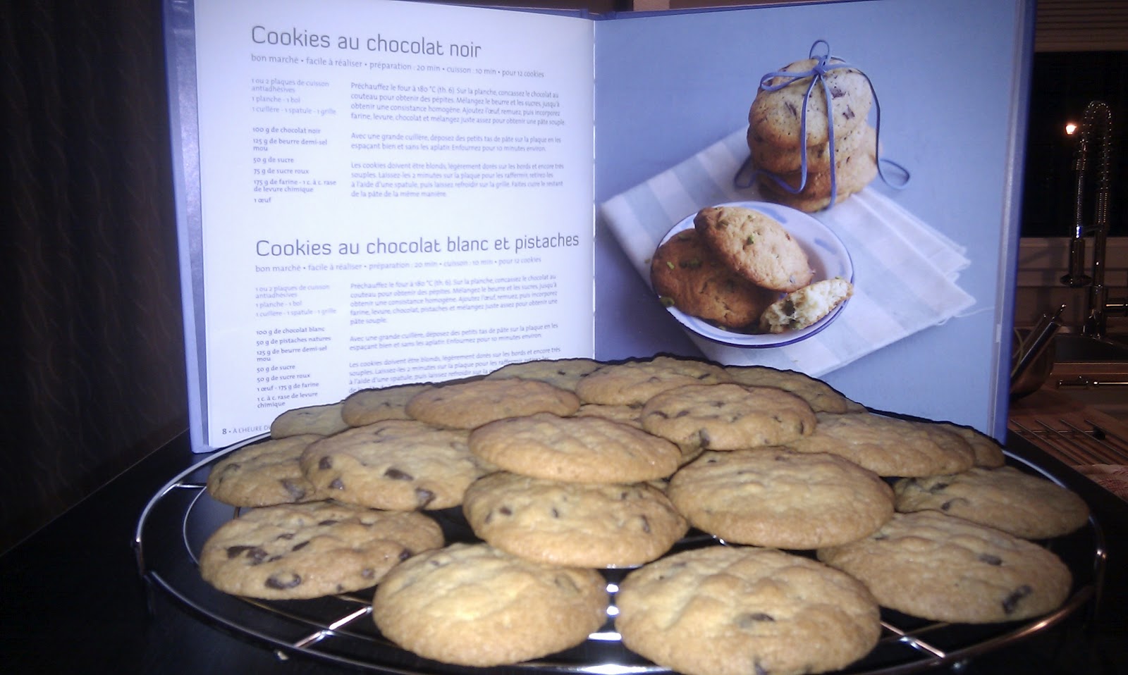Les cookies doivent être blonds, légèrement dorés sur les bords et encore très souples. Laissez-les 2 mn sur la plaque pour les raffermir, retirez-les à l'aide d'une spatule, puis laissez refroidir sur la grille".